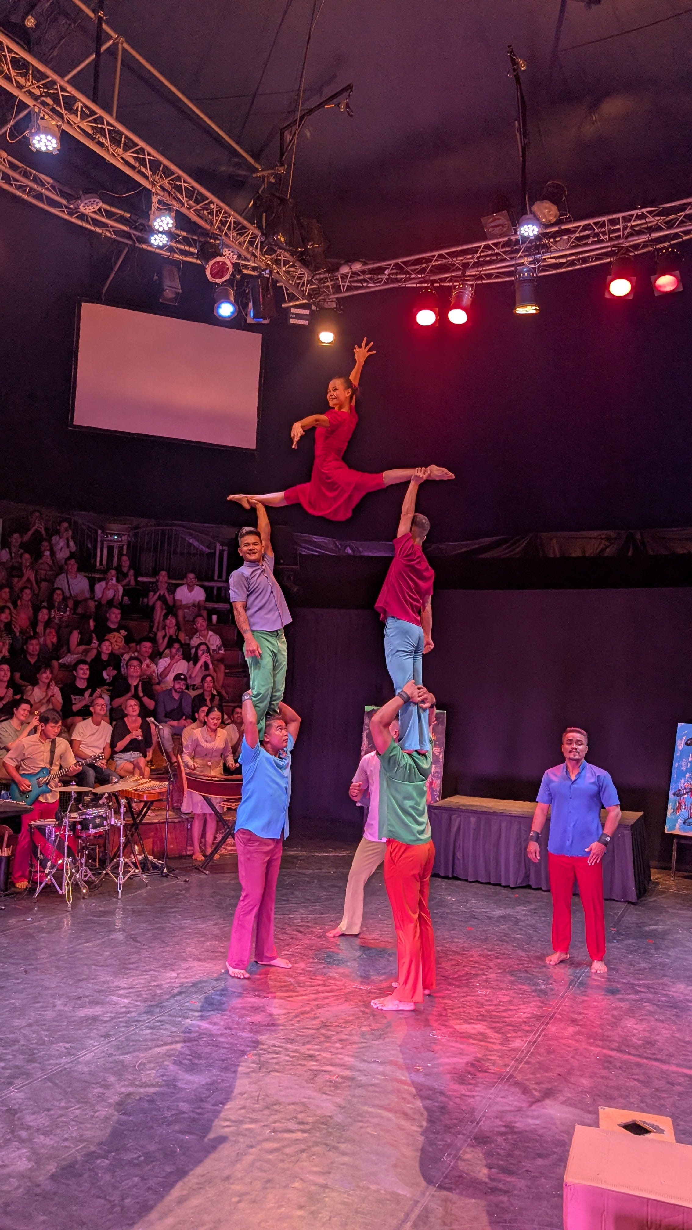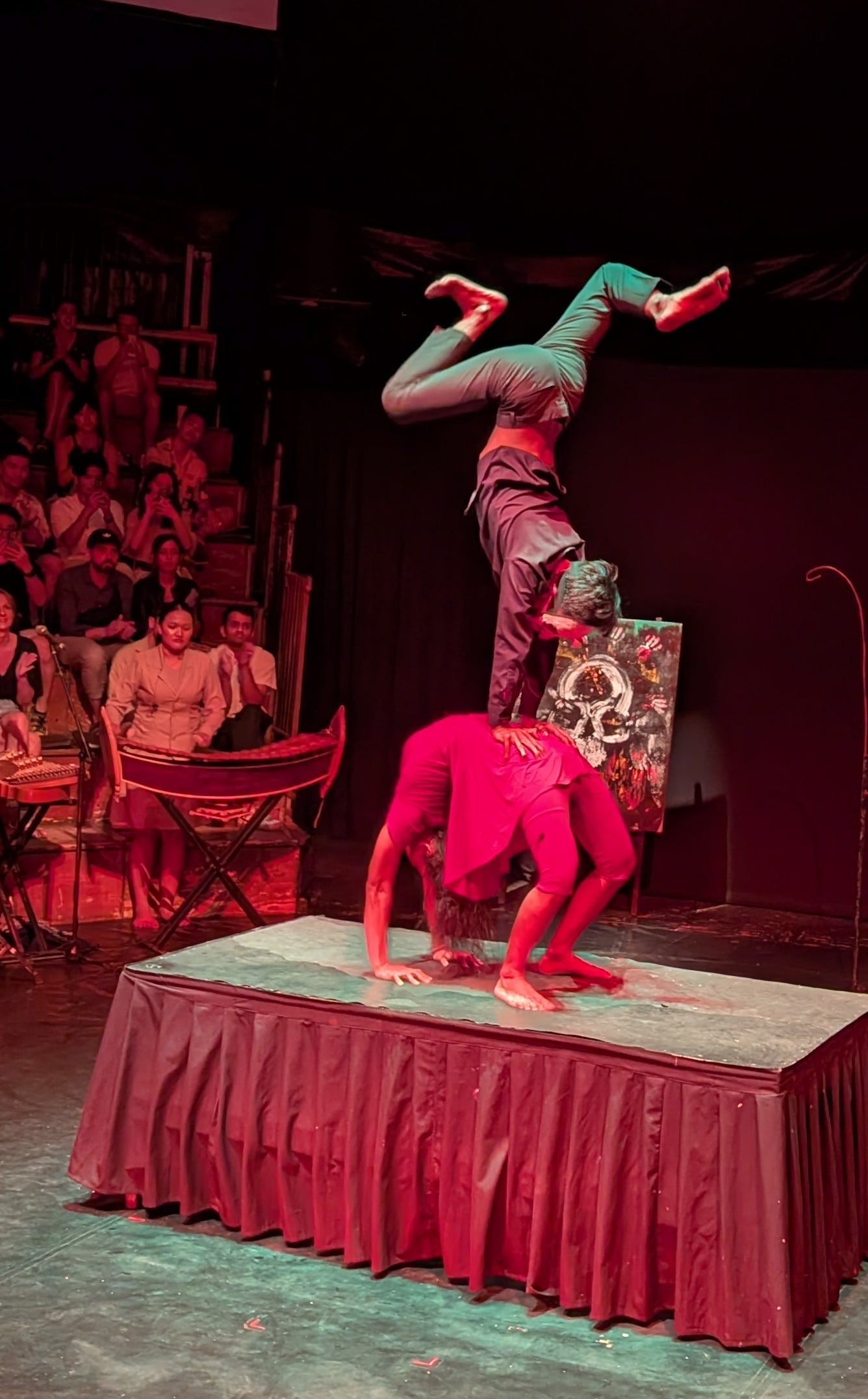 Phare, the Cambodian Circus, is a project of Phare Ponleu Selpak, and all the performers are graduates of their school, which offers free general education and professional arts training. Their shows tell stories rooted in folklore and personal experience and incorporate live music and visual art, as well as dance and circus arts.