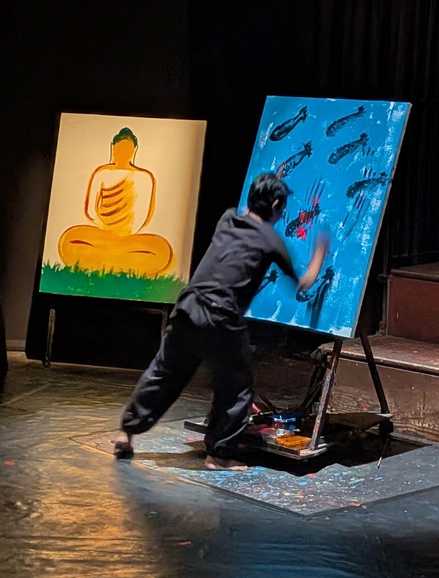One of the unique aspects of the show was the onstage painter who created works live that connected to the action of the story. His piece about a bombing attack made the audience gasp audibly.