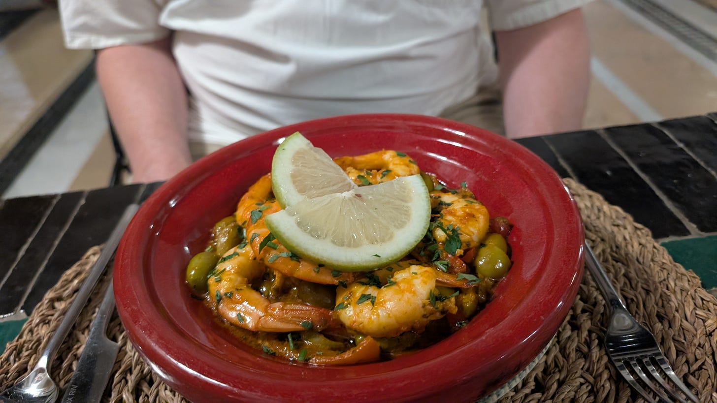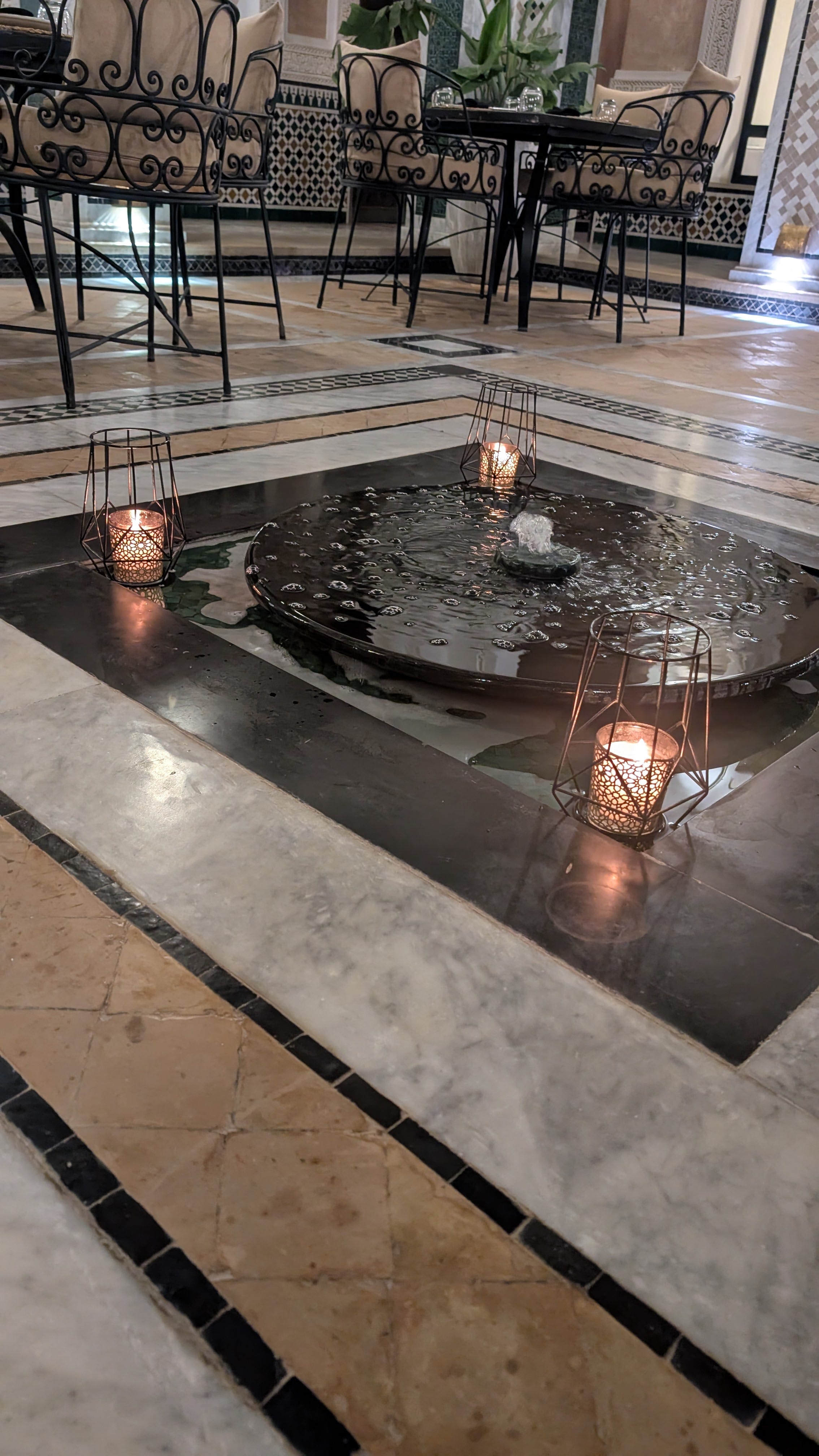 That evening we decided to have dinner in the hotel’s lovely courtyard. Between sets by a very talented oud (traditional Moroccan stringed instrument) we enjoyed the sound of the fountain while we enjoyed our meal.