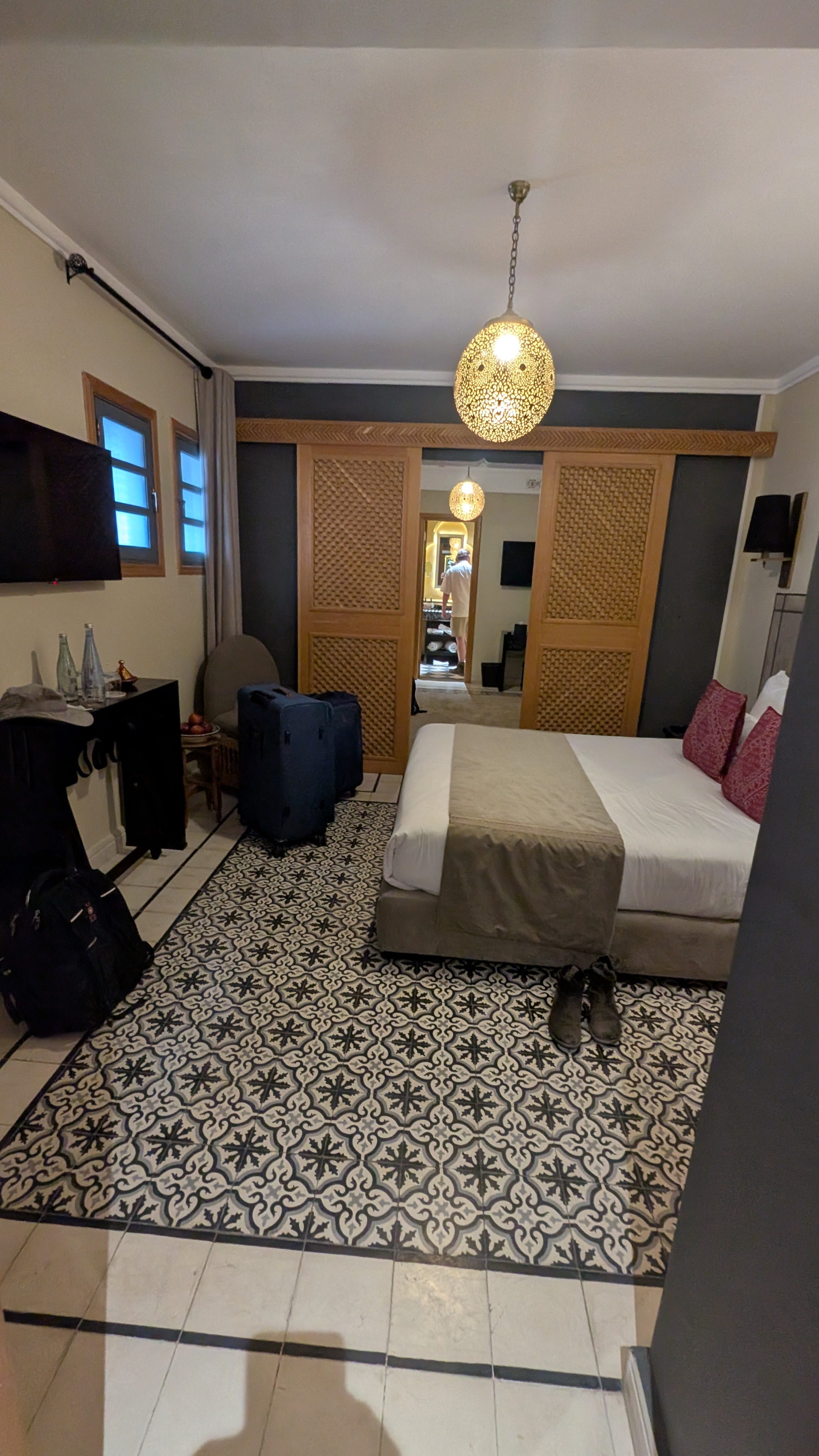 Our room was not as pretty as in Chefchaouen, but it did have sliding doors between our bed and Alice's, was well as two separate bathrooms.
