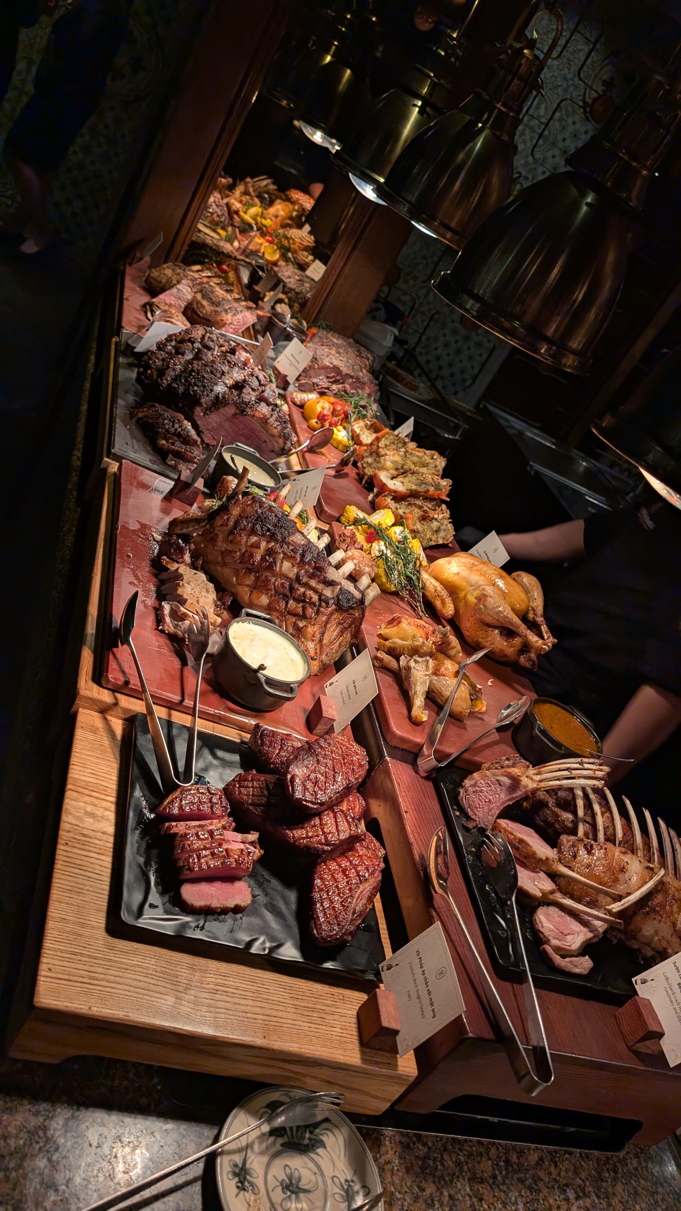 Then there was the largest arrray of roast meats I've ever seen in one place. There was duck, lamb, pork, guinea fowl, veal, and three different kinds of beef, not to mention the baked stuffed lobster!