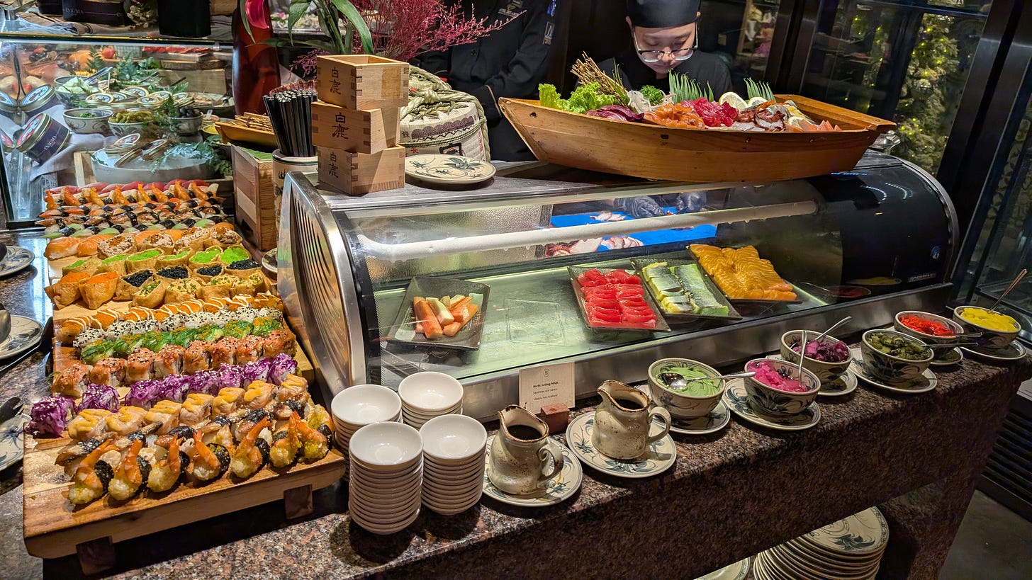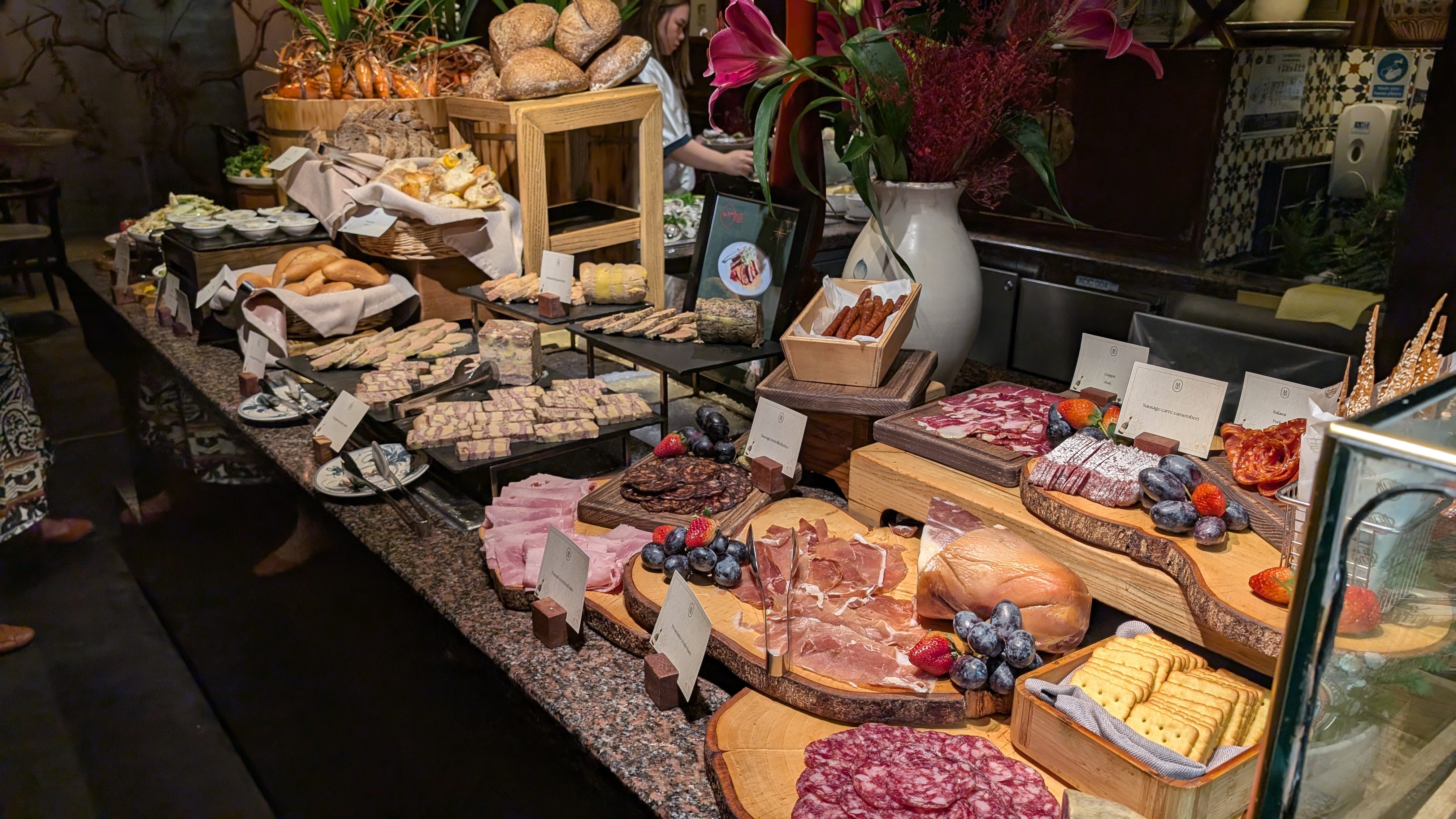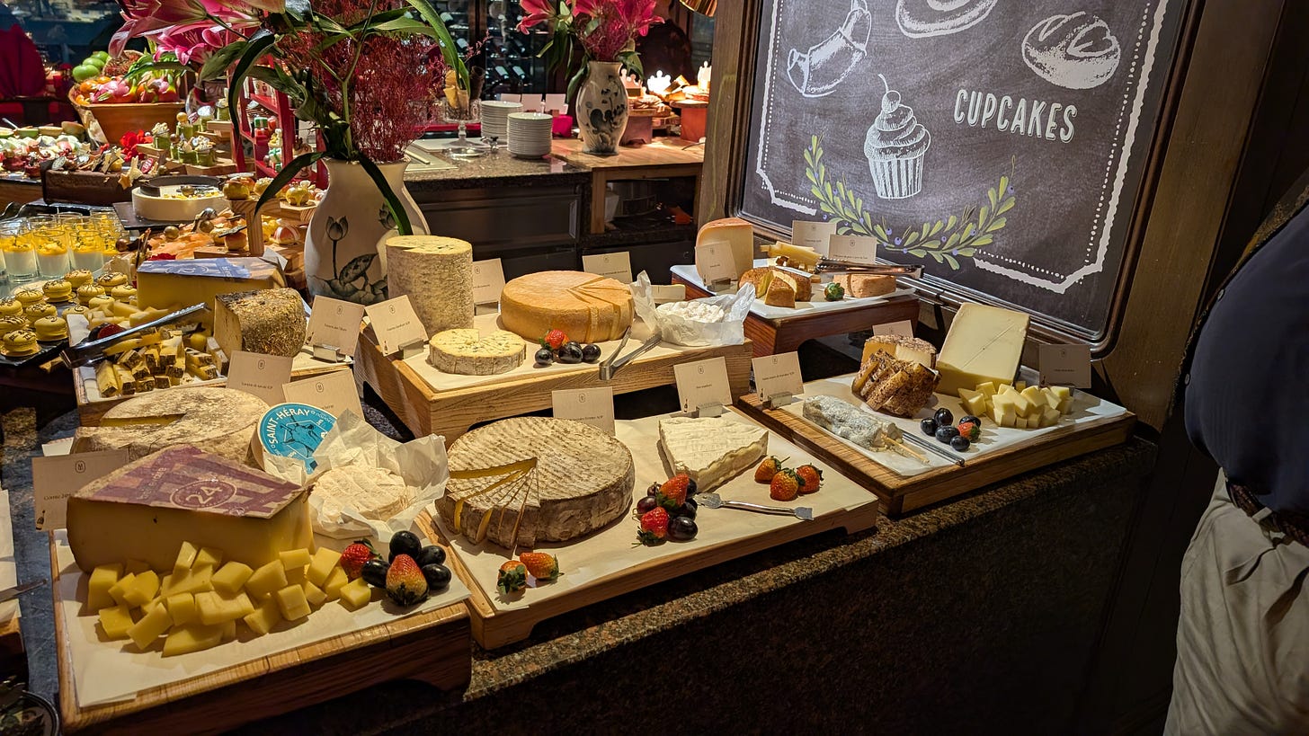 The other side offered an array of tropical fruit, matcha or red velvet petit fours, tiramisu, raspberry chocolate mousse, a chocolate log cake, passionfruit panna cotta, cupcakes, macarons, and cute little choux cremes decorated with tiny stars.