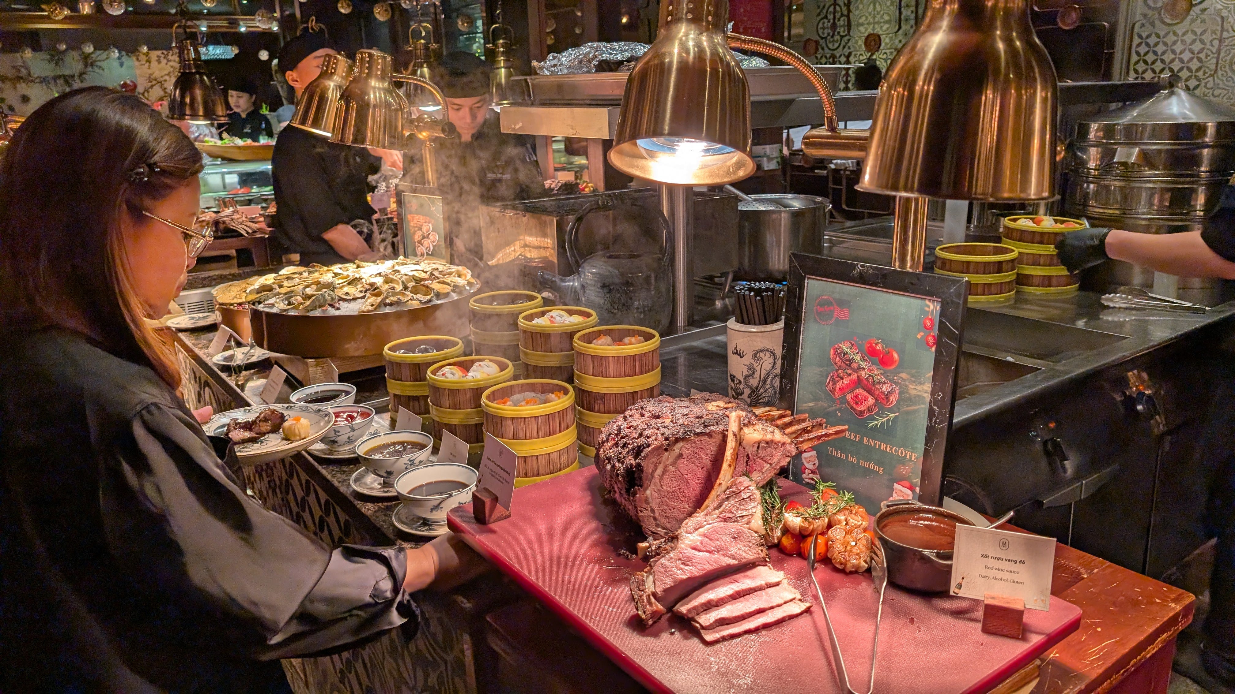 We had asked Destination Asia to book something festive for us and they made reservations for the special holiday buffet in the hotel’s main restaurant. So we dug our fanciest duds out of our suitcases and headed to Saigon Kitchen.