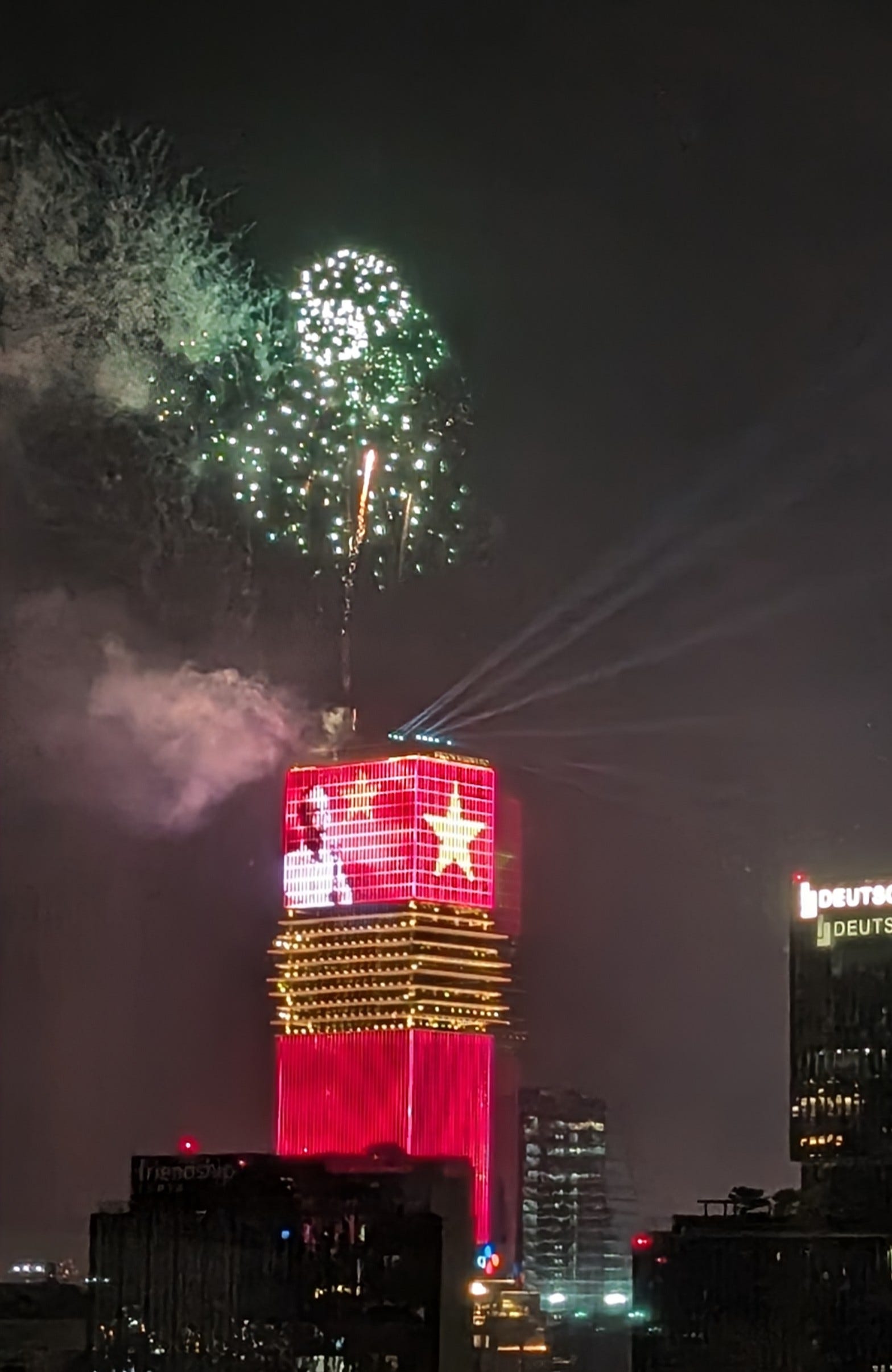After the movie we went down the hall to the Sky Lounge, where we had a bit more bubbly and an amazing view of the lightshow at the Saigon Marina IFC tower.