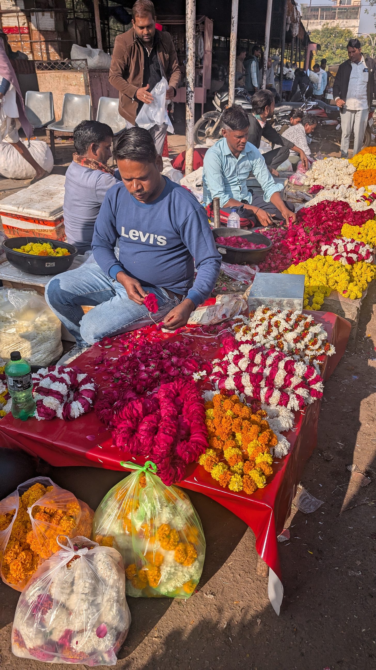 We saw several vendors creating garlands and other offerings for the temples.