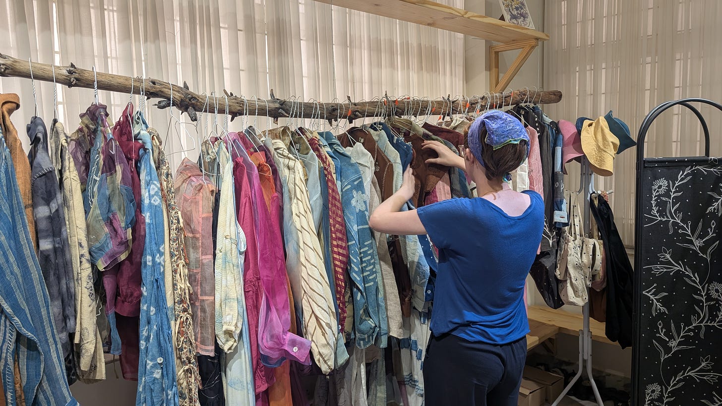 The last stop of the tour was the atelier of HeenaAgrima, a local sustainable fabric and design brand. It is run by two young women who have been working together since grade school, where Selva was also a classmate. After time in New York and Milan, they returned home to highlight the traditional local eco-friendly dyes and to create zero waste fashion.