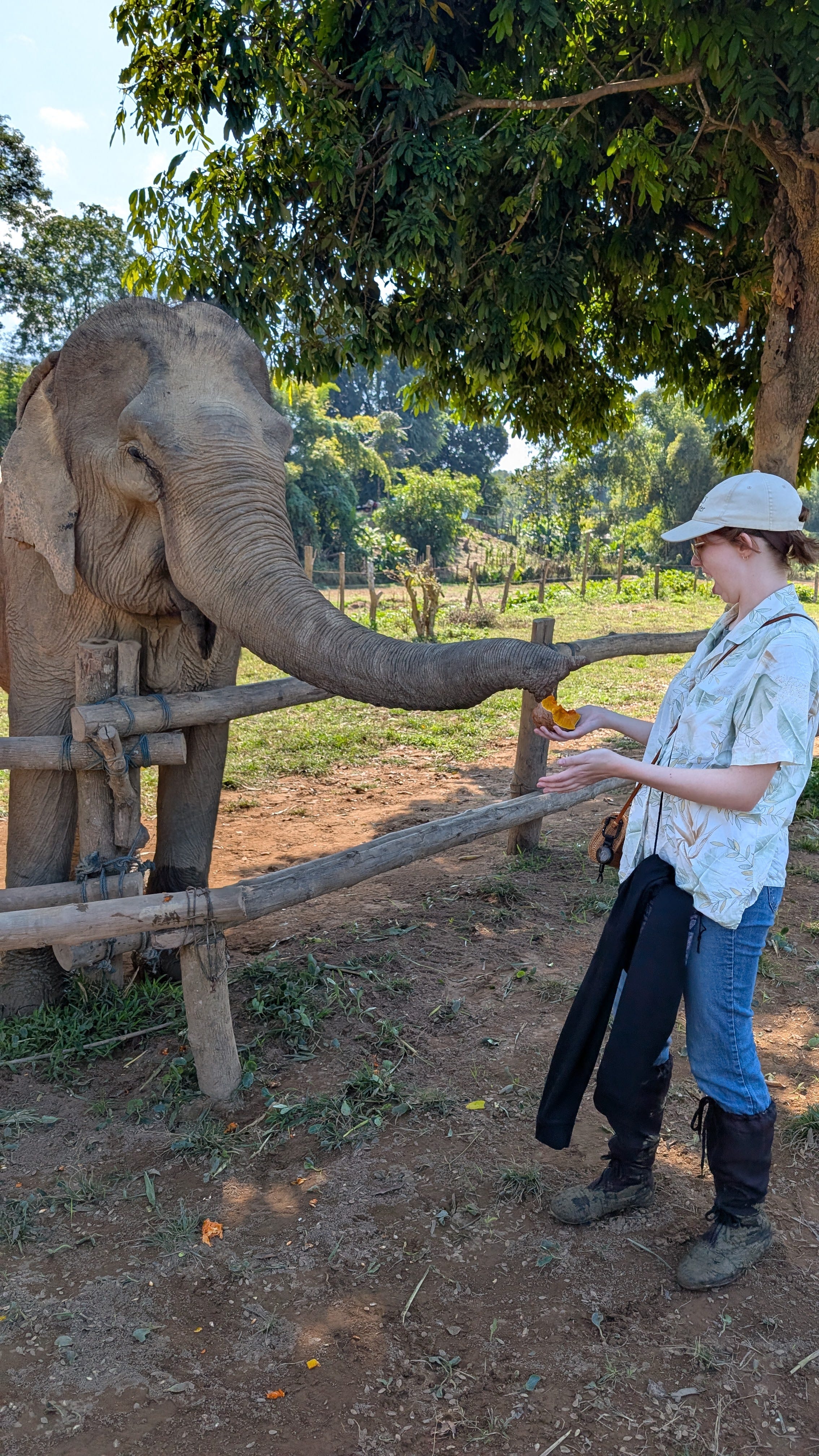 We got to give Than and San a pumpkin treat and then walked with them back to the river for a drink. Along the way we had a gorgeous view of a nearby hill that looks so much like an elephant itself.