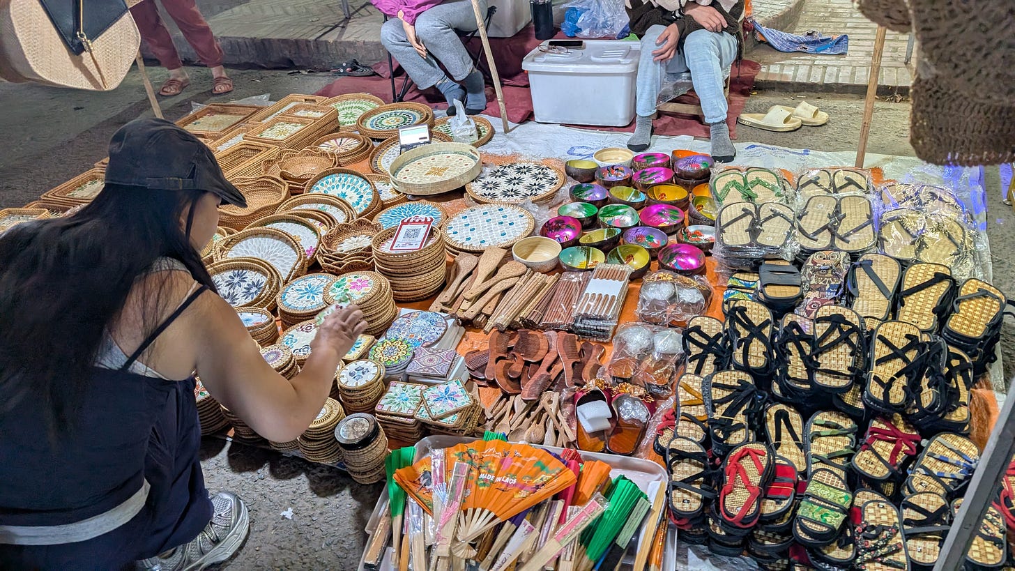 We walked past hundreds of stalls with their goods laid out on the pavement. There were handicrafts, jewelry, artwork, clothing, and more, lining both sides of the street for more than half a kilometer.