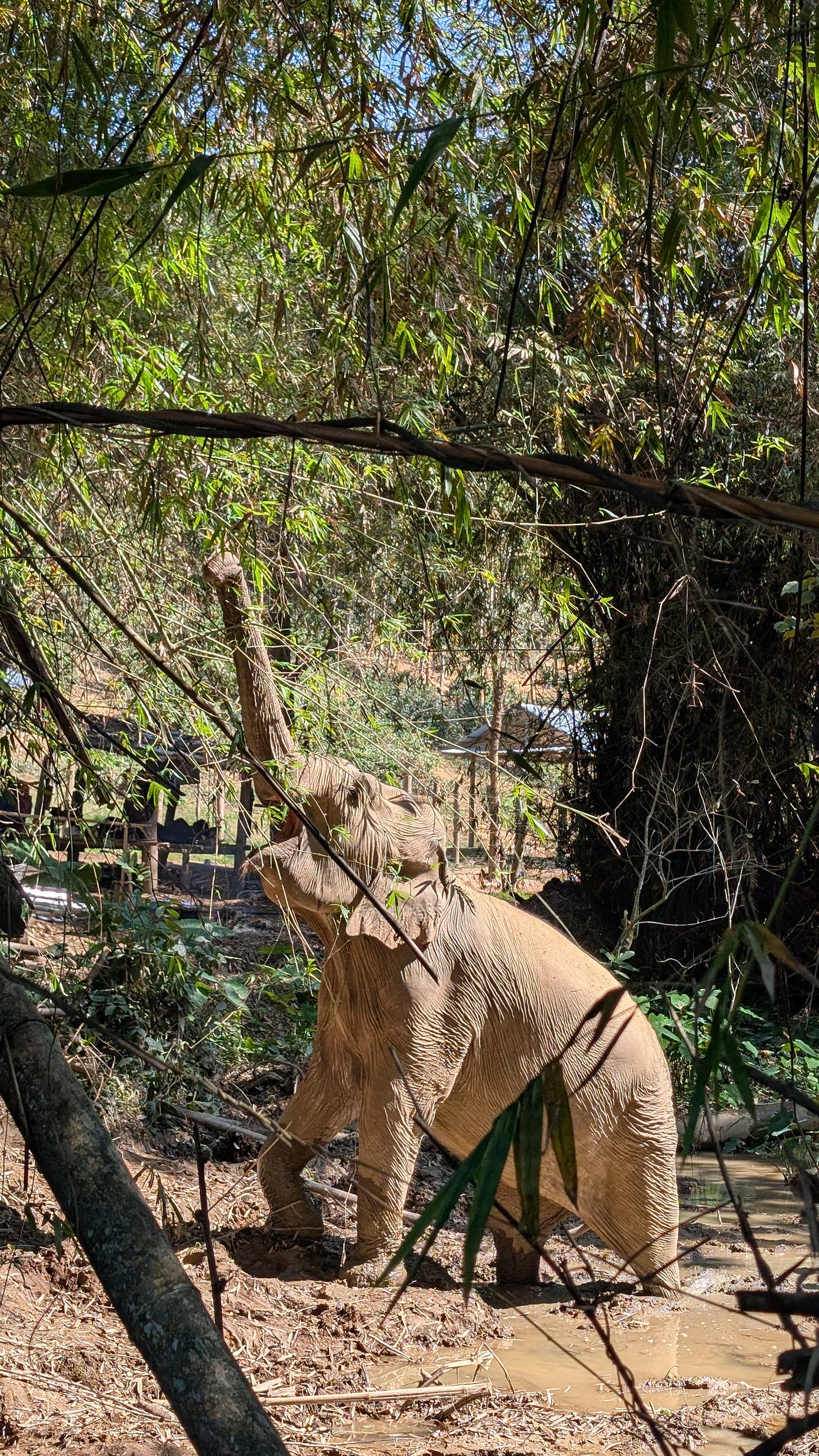 Our visit started with an orientation session, explaining the goals and practices of the project. They have been able to rescue a dozen elephants from logging companies and low welfare tourist attractions. They do not allow any riding and do not use chains, or whips. They rent land from the local community and work with them to reduce human/elephant conflict. The elephants cannot be released into the wild, but are able to spend most of their days foraging in their natural environment, accompanied by mahouts devoted to their care.