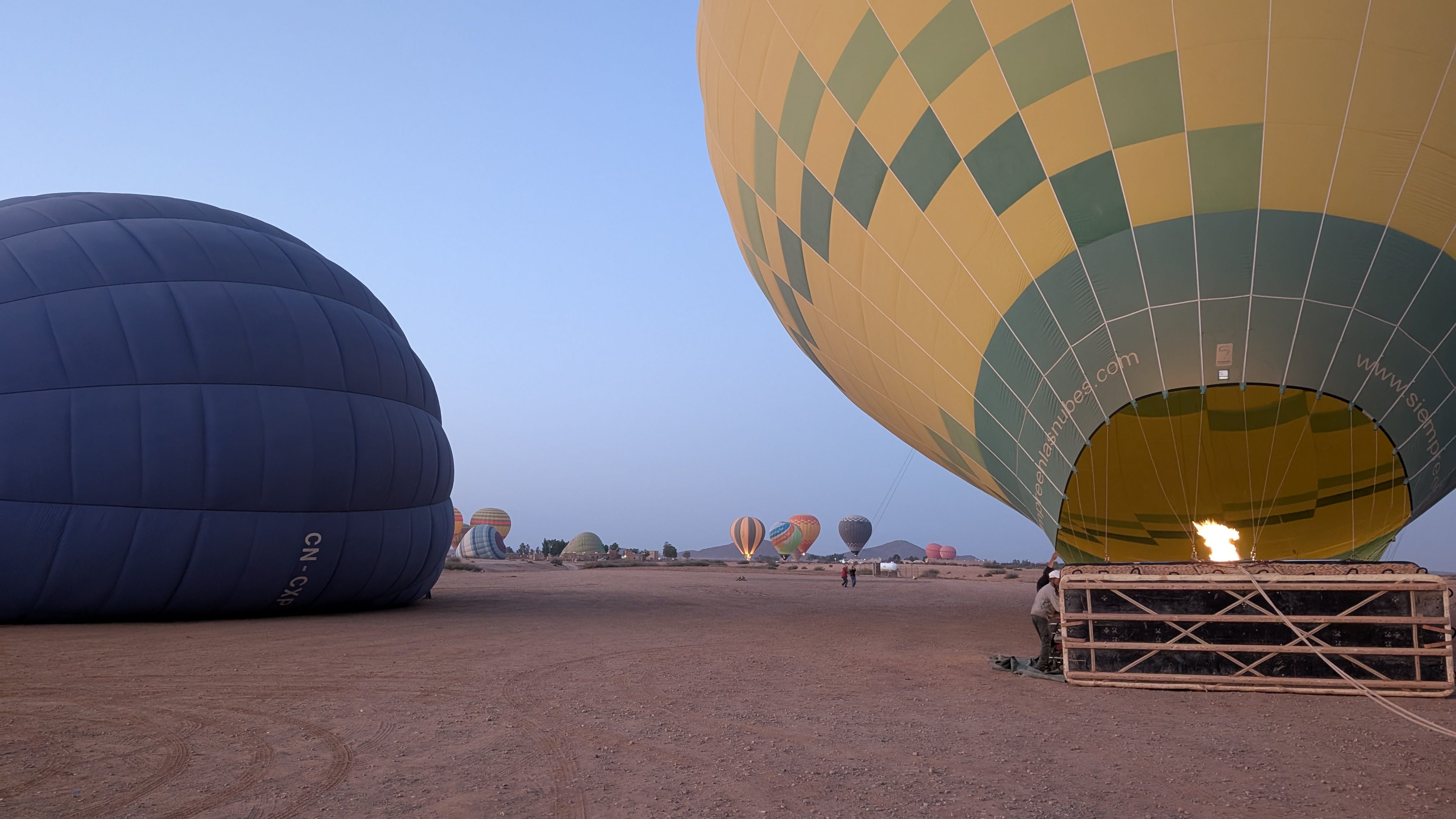 Having seen the moon rising over the medina, we were up again in time to see it setting as we arrived at the base camp for our balloon ride at dawn.