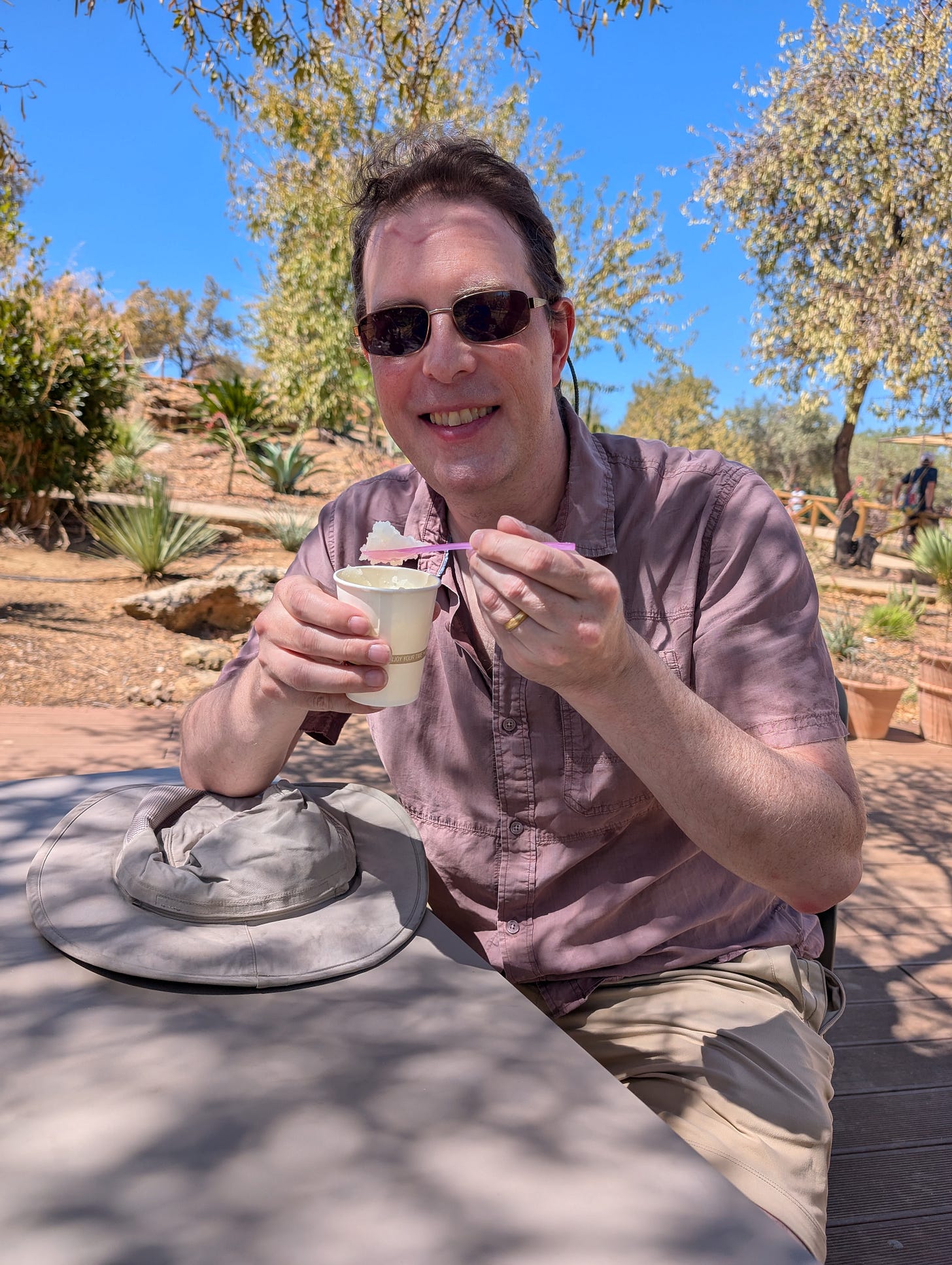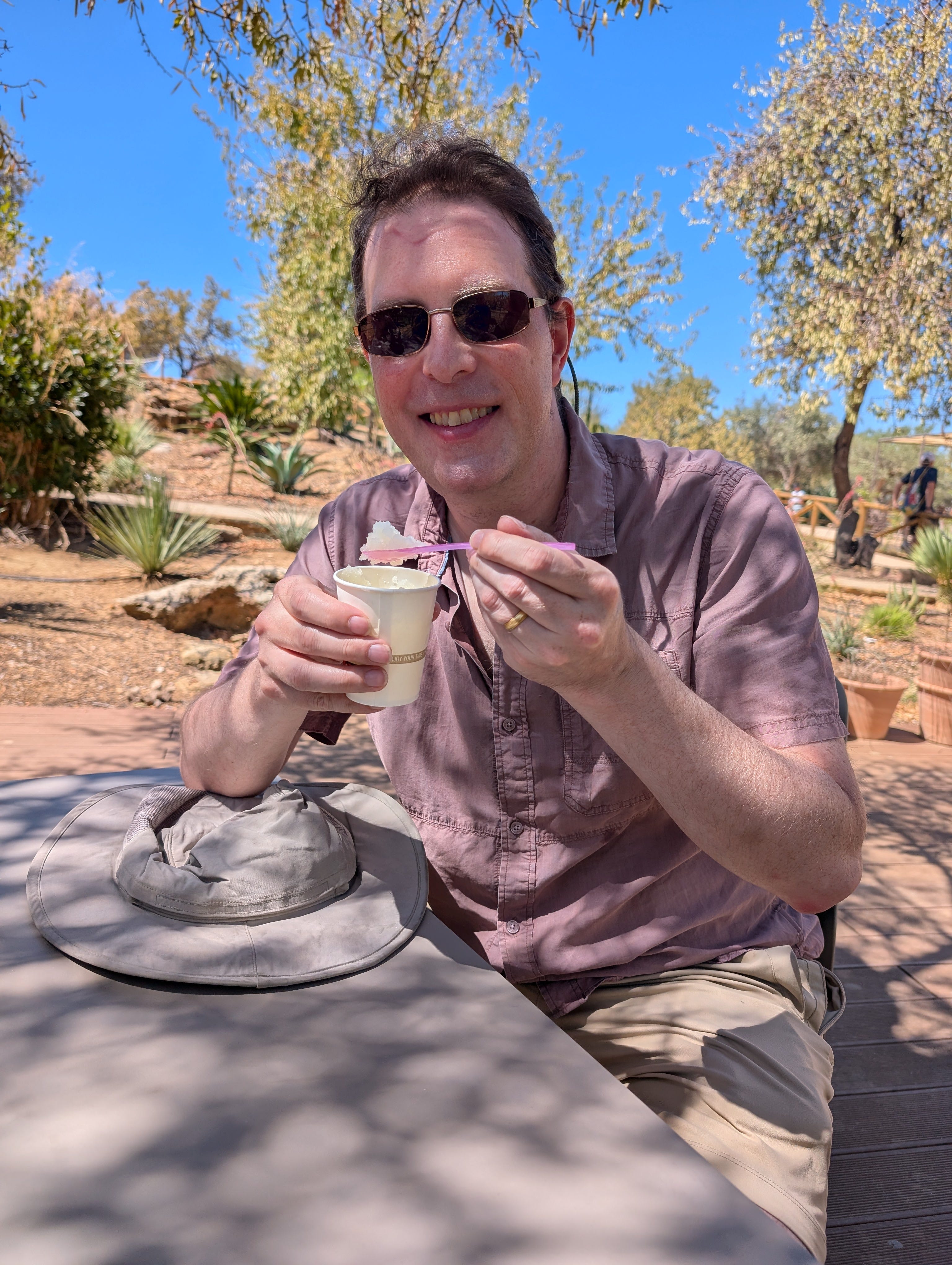 A cafe along the trail served the best granita we had on the island, made in house with fresh oranges and lemons, and served at tables shaded by olive trees.
