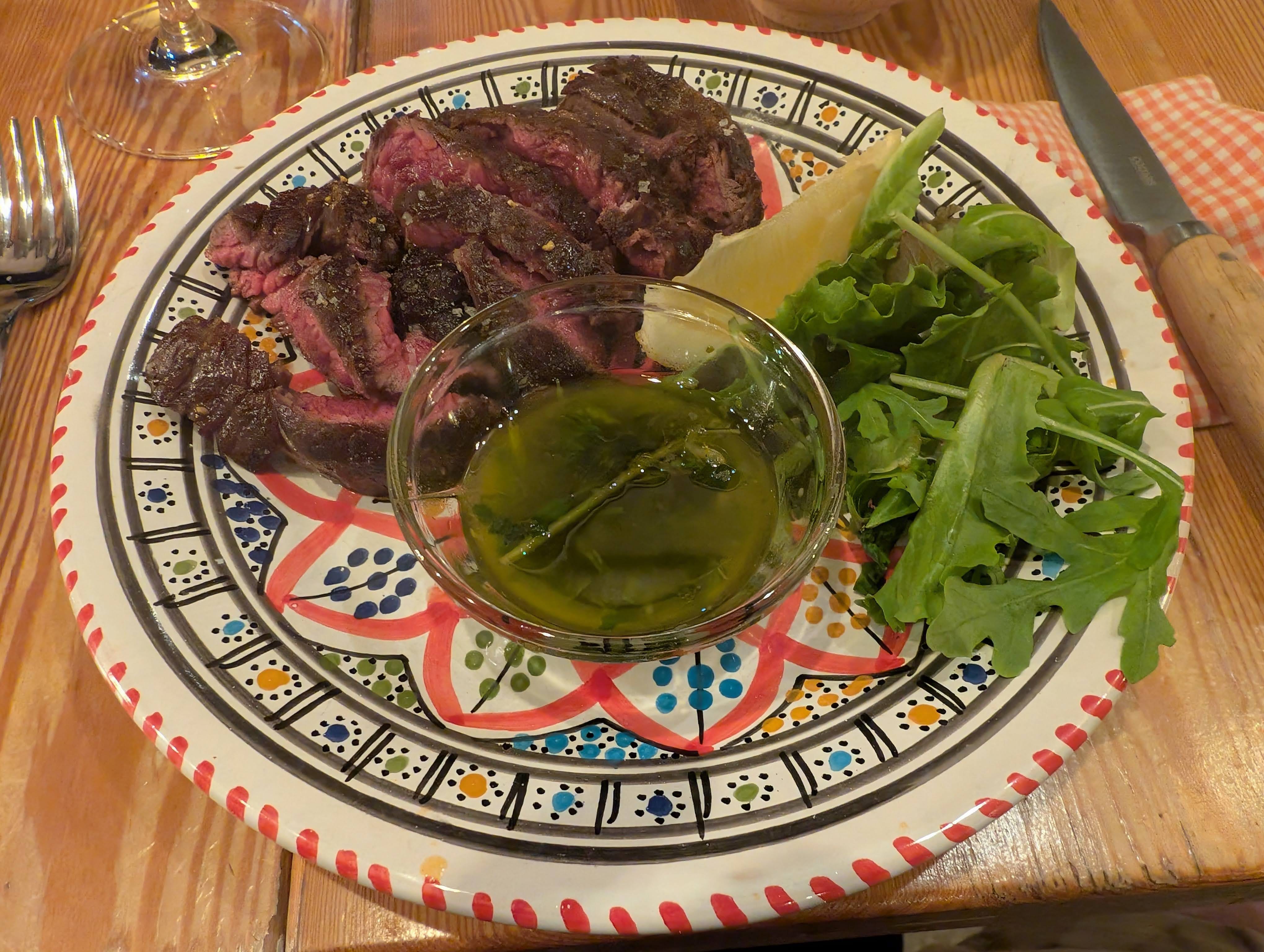 On our walk Tuesday, Alice and I had noticed a restaurant that looked fun along the course of the Santa Maria de Novo stream--dry now, but walled in. So we had made a reservation for 9pm and strolled down the hill to My Name is Tannino, where Jason’s steak was the star of the show!