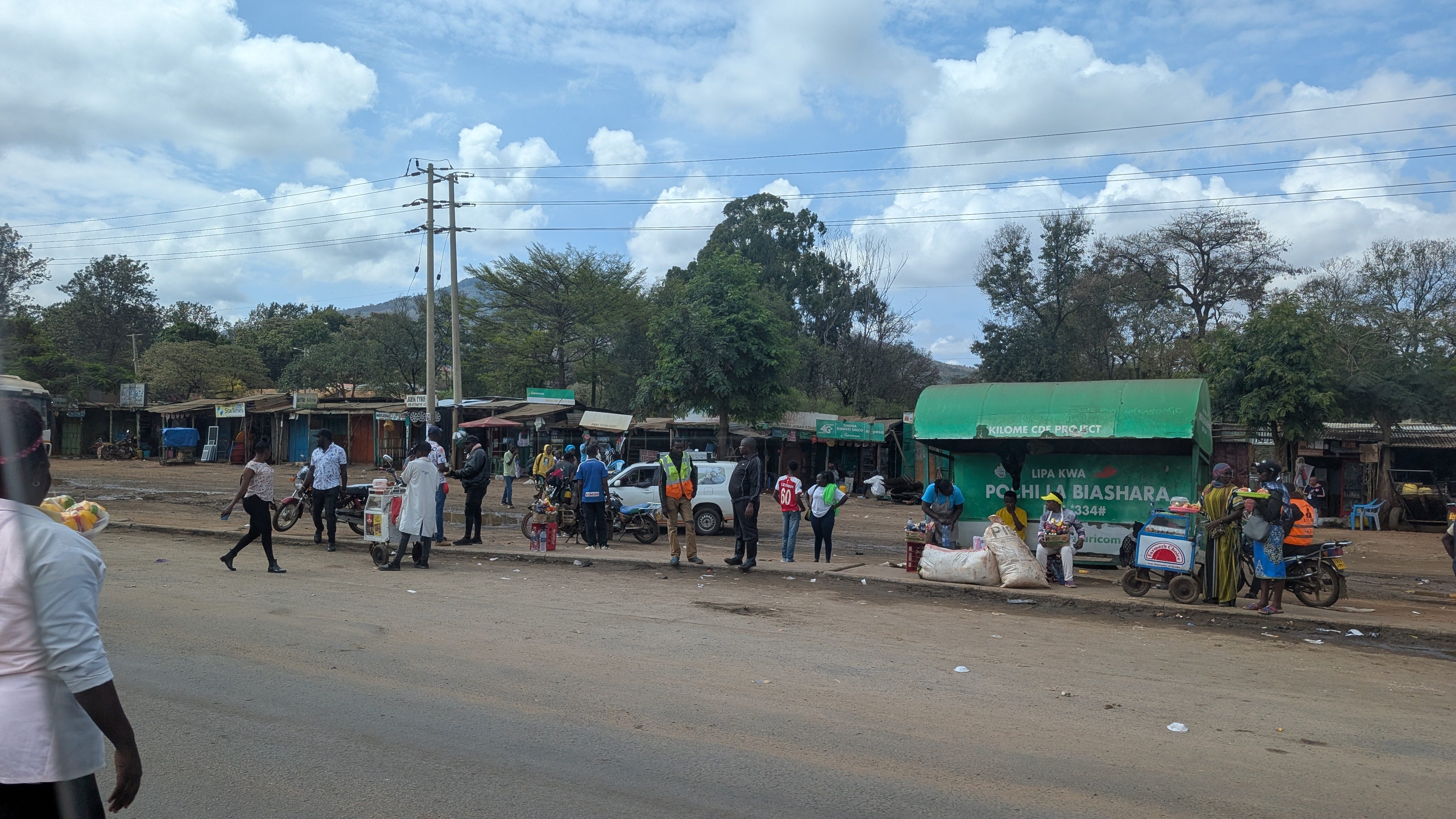 We left Amboseli early in the morning and drove hard most of the day. Traffic here is pretty intense--most of the time we were on a two-lane highway full of big trucks. Passing is a big part of the process and drivers think nothing of barrelling head on toward each other, trusting there will be room to slip back into the correct lane before a collision. The road goes through many towns, where shops with disproportionately grandiose names (Royal Palace Restaurant, Finest Salon, Grand Lakeview Hotel) line the dirt frontage and people stand in between the lanes of traffic offering fruit and drinks for sale as the cars and trucks bump slowly over the speed bumps.