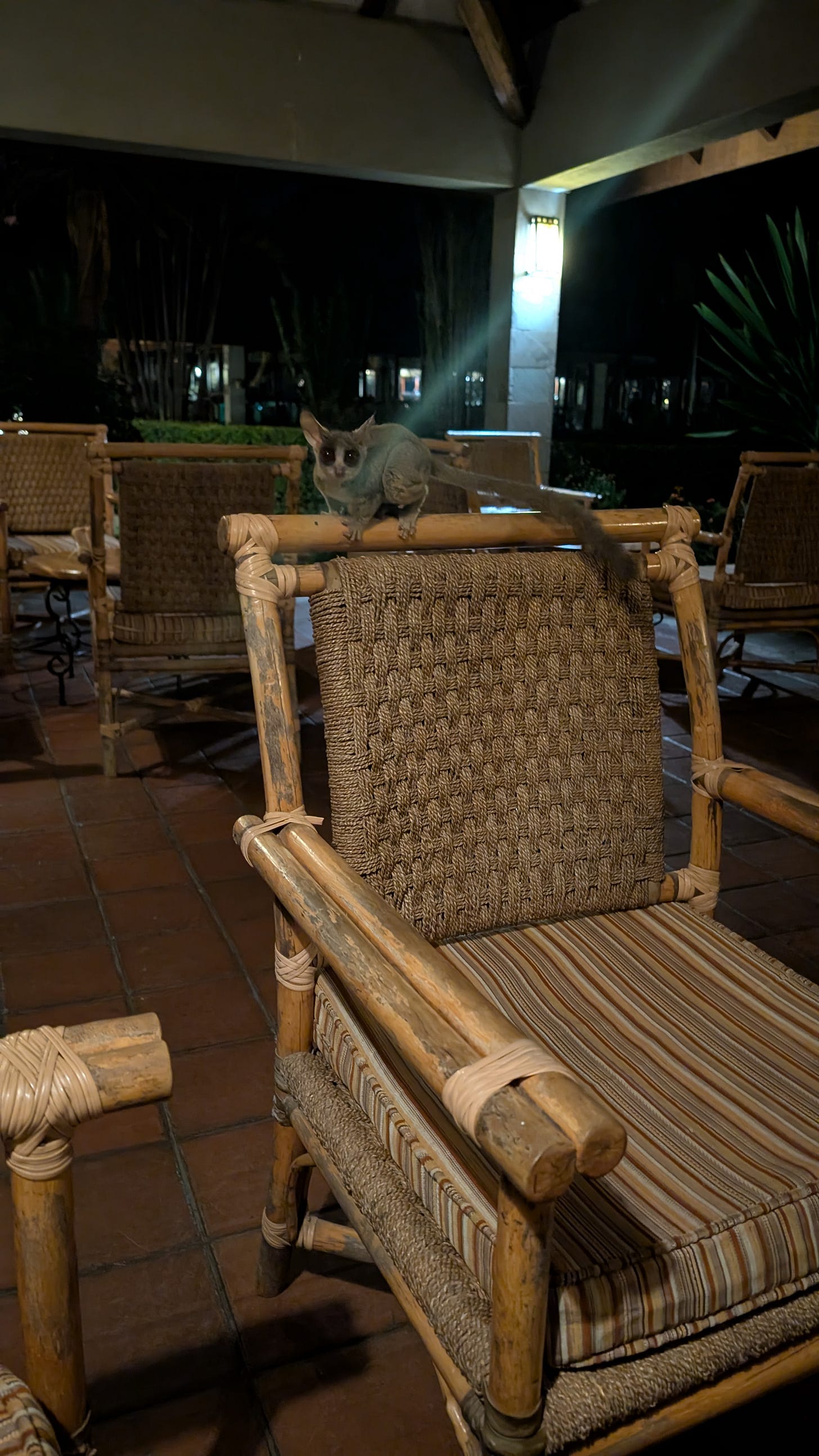 P.S. Just as I was proofreading this post, the bush baby I have seen around the patio jumped into the table in front of me and then onto the back of the chair next to mine. Hello and farewell, little friend!